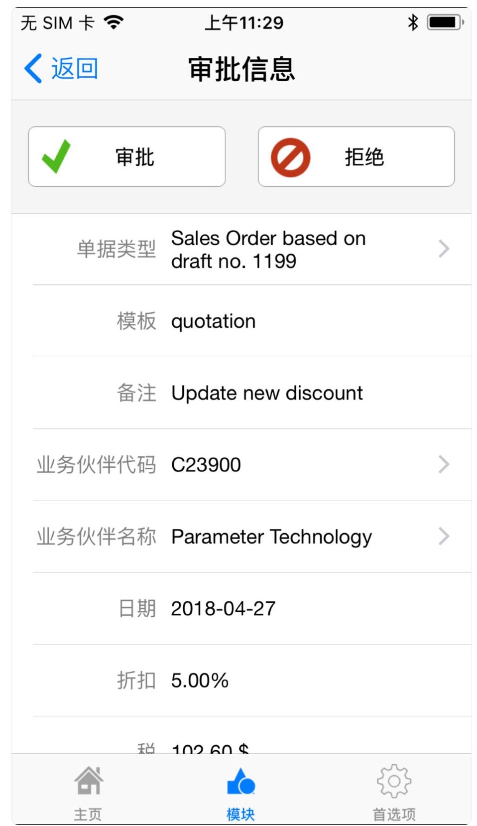 注釋:如需SAP Business One移動應用實際操作您的業(yè)務數據,您的后臺系統須為SAP Business One。您現在就可以通過演示版登錄即刻體驗此款移動應用。