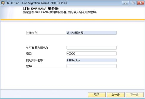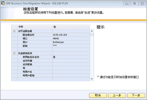 在這里設(shè)置目標(biāo)SAP HANA服務(wù)器的相應(yīng)信息,包括許可證服務(wù)器名稱、端口及密碼等信息。設(shè)置成功后,激活'下一步'按鈕,點(diǎn)擊'下一步'按鈕: