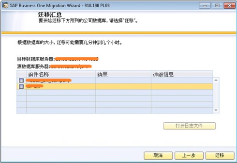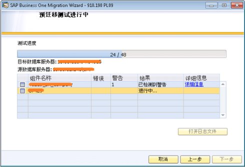 在遷移過程中,向?qū)?huì)先進(jìn)行數(shù)據(jù)庫的備份,然后將公司數(shù)據(jù)庫復(fù)制到SAP HANA中。向?qū)б矔?huì)顯示進(jìn)度條以及遷移結(jié)果。遷移完成后,點(diǎn)擊'打開日志文件',可以查看遷移的具體日志信息。點(diǎn)擊'下一步':