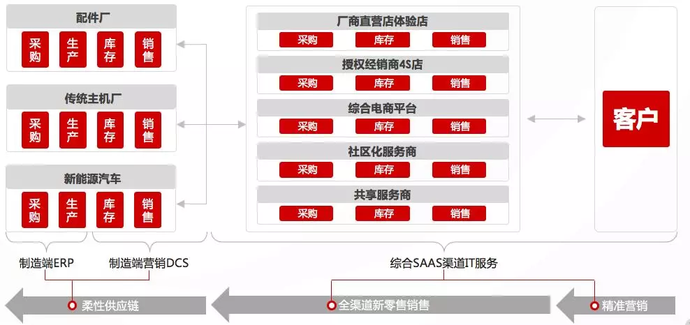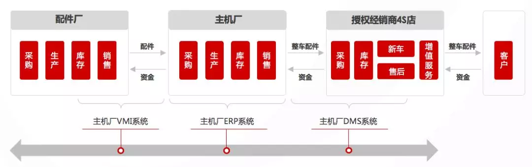 傳統(tǒng)燃油車(chē)時(shí)代,以產(chǎn)品為核心的經(jīng)營(yíng)模式,更多的關(guān)注產(chǎn)品流通和交付,對(duì)上游配件廠及下游經(jīng)經(jīng)銷(xiāo)商通過(guò)信息技術(shù)實(shí)現(xiàn)效率管控。