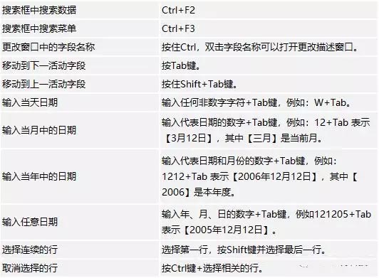 使用以下快捷鍵,可以快速處理各種單據(jù)中的表格數(shù)據(jù)。