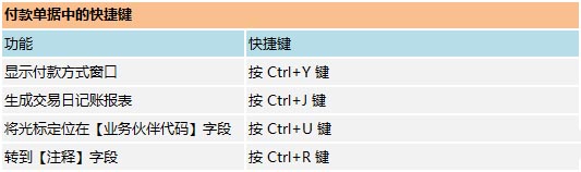 付款單據(jù)中的快捷鍵