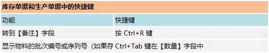 庫存單據(jù)和生產(chǎn)單據(jù)中的快捷鍵